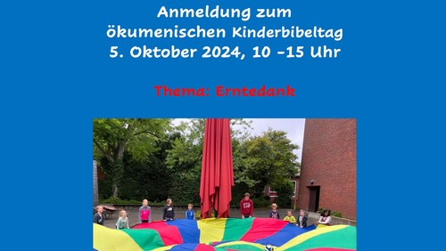 bei unserem Kinderbibeltag zum Thema "Erntedank" laden wir herzlich ein und bieten wir euch einige Stunden an, in denen wir in kleinen Gruppen mit Euch spielen, basteln, singen.