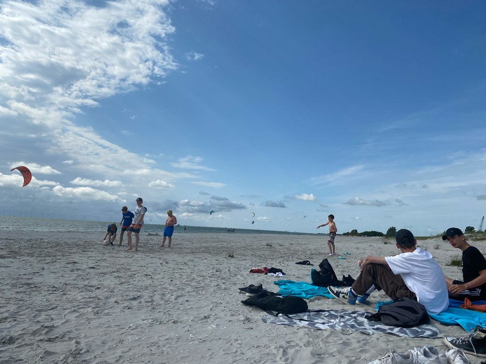 An diesem Tag blieben wir im Hafen. Am Morgen gab es leckeres Frühstück und es herrschte Aufbruchsstimmung, denn es war eine schöne Radtour geplant. Wir fuhren ca. eine Stunde über die Insel durch die Dünen und den Wald, bis wir am Strand ankamen. Dort verbrachten wir viel Zeit mit Baden, Fußball und Volleyball spielen. Am frühen Abend waren wir wieder bei unseren Schiffen und es wurde wie jeden Tag gekocht. Anschließend trafen sich alle unter Deck der Morgana und es wurde "König der Löwen" geschaut.