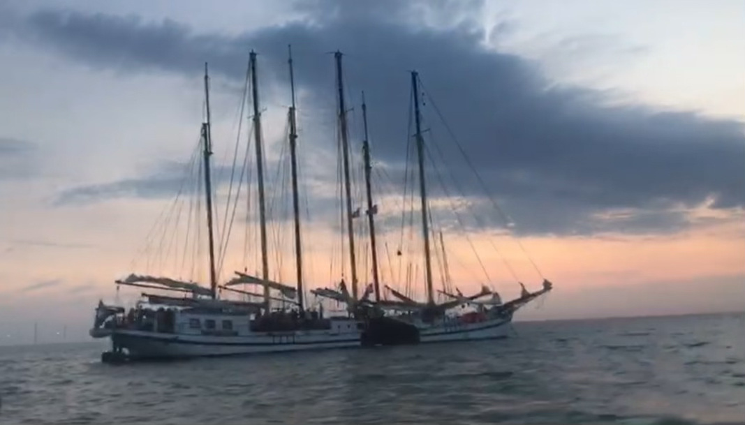 Dieser Morgen begann leider mit einer traurigen Nachricht. Teamer Jan hatte einen positiven Corona-Test. Daraufhin testeten sich natürlich alle Teamer und Teilnehmer und es stellte sich heraus, dass wir fünf weitere Fälle auf der Morgana hatten. Nachdem geklärt war, wie die sechs zurück nach Münster kommen würden, segelten wir nun mit neuen Maßnahmen weiter zu einer schönen Stelle mitten im IJsselmeer. Dort ankerten beide aschiffe dicht nebeneinander und nun waren wir eine große Insel. Wir verbrachten einen unvergesslichen Badetag auf dem Wasser. Bei spiegelglattem Wasser, langsam untergehender Sonne und lauter Musik wurde gegrillt und ließ die Sorgen vom Morgen vergessen.