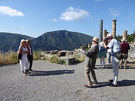 Auf der Fahrt nach Delphi, einem der bedeutendsten Orte im klassischen Griechenland, tauchten wir ein in die griechische Götterwelt. Durch „Die Schönsten Sagen des klassischen Altertums“ von Gustav Schwab, vielleicht auch Schulunterricht in den alten Sprachen, sind wir ganz anders herangeführt worden an diese Glaubenswelt als Paulus. Für ihn war es immer die andere, die polytheistische Religion, er ergrimmte, (geriet in Wallung, vielleicht genauer und moderner übersetzt) als er in Athen die vielen Tempel und Götterbilder sah. Und doch – es ist eine faszinierende Welt, die Welt der Athene und der Artemis, des Apollon und Delphi. Einer der schönsten Tempelbezirke Griechenlands.