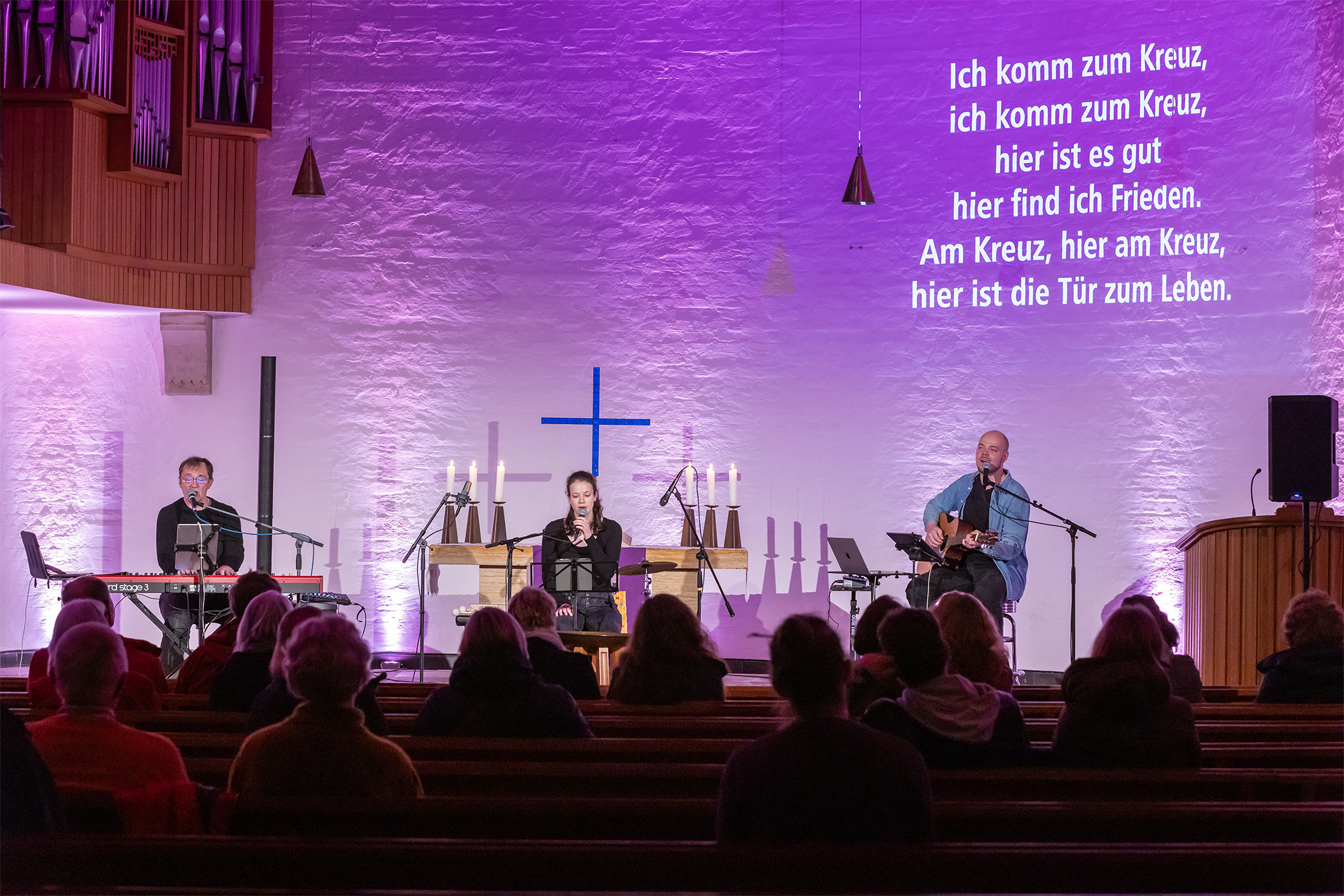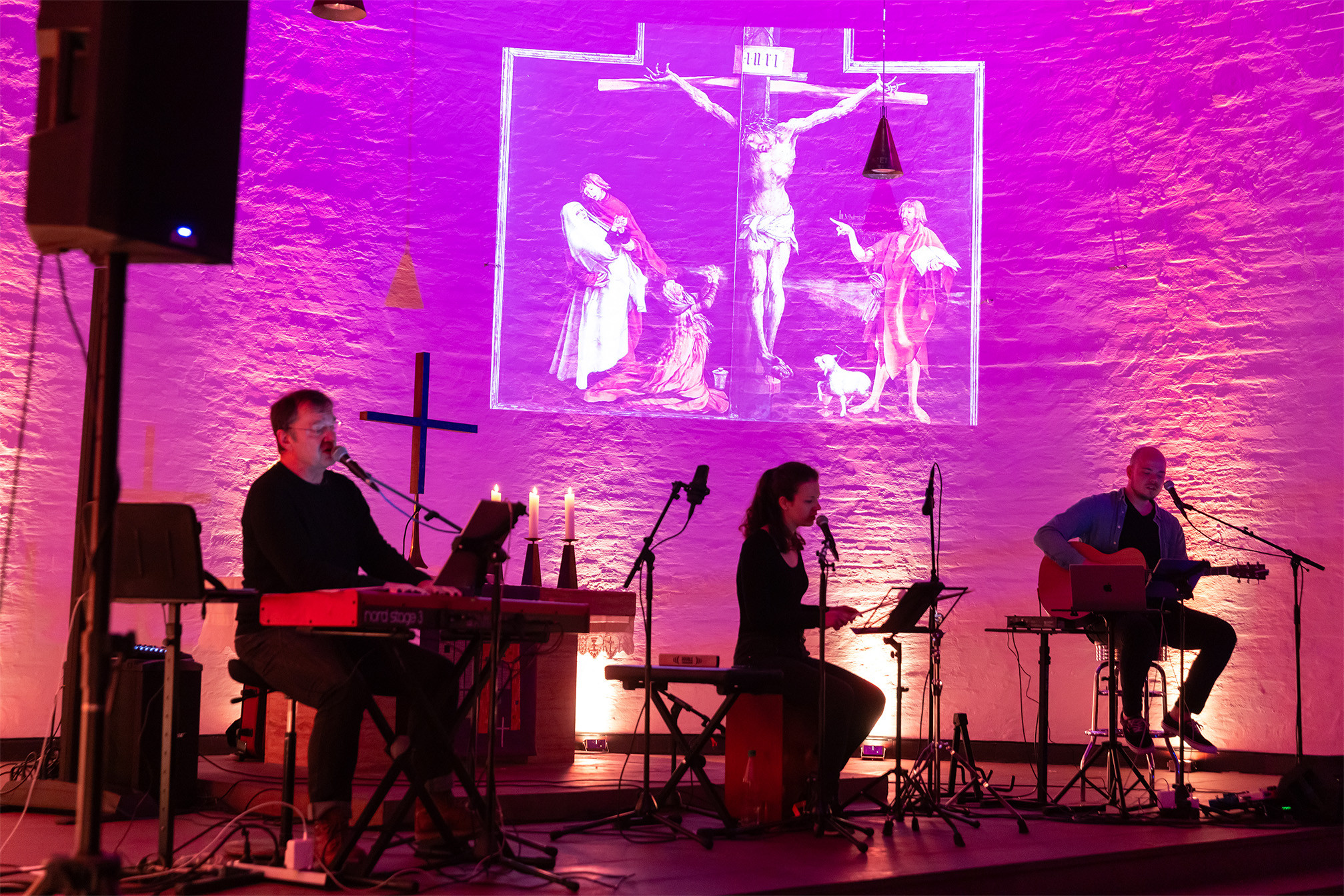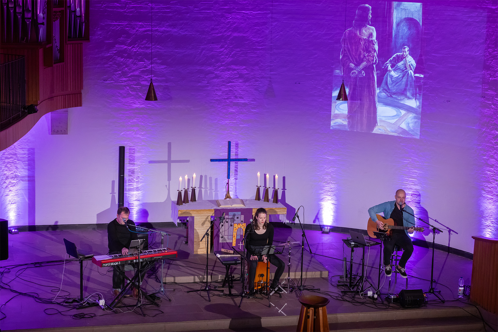 Am Freitag vor Palmsonntag wurden gut 60 Besucher in der Auferstehungskirche eindrücklich auf die Osterfeiertage und das Ende der Passionszeit eingestimmt. Philipp Holmer, Pop-Kantor des Evangelischen Kirchenkreises Münster, sein Vorgänger Hans Werner Scharnowski und eine Studentin von der Pop-Akademie Witte, Franziska Schelben, berührten durch Songs und Lesungen, innere Monologe biblischer Figuren und eine stimmungsvolle begleitende Licht- und Bildschau. Auch Popsongs wurden in das Konzert integriert und lieferten neue Perspektiven. Die Tiefe des Leidensweges Jesu und die Bedeutung für die Menschen, denen er begegnet ist, kam den Zuhörern ganz nah. Danke für dieses wundervolle Programm!