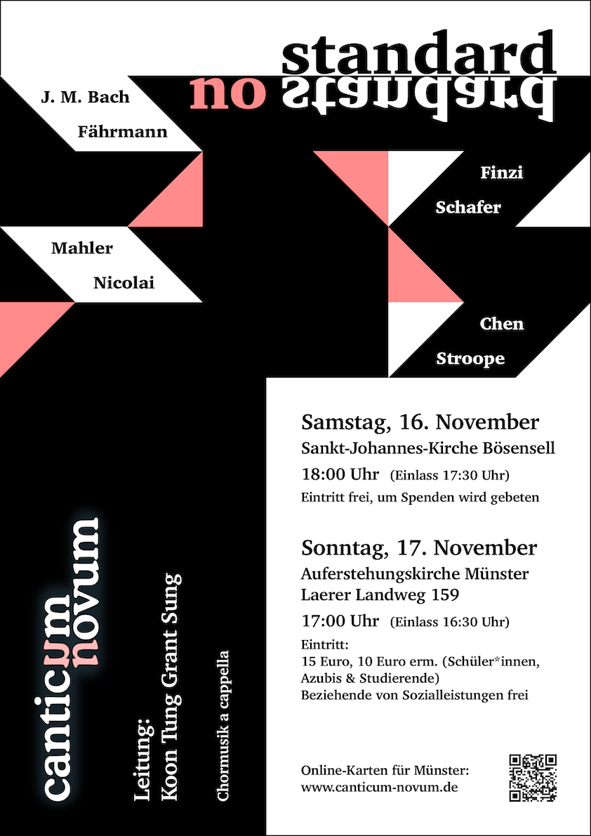 Am 17. November 2024 werden im Programm (no) standard Werke aus dem Standard-Repertoire europäischer Chöre den Standardwerken von außer-europäischen Chören gegenübergestellt.